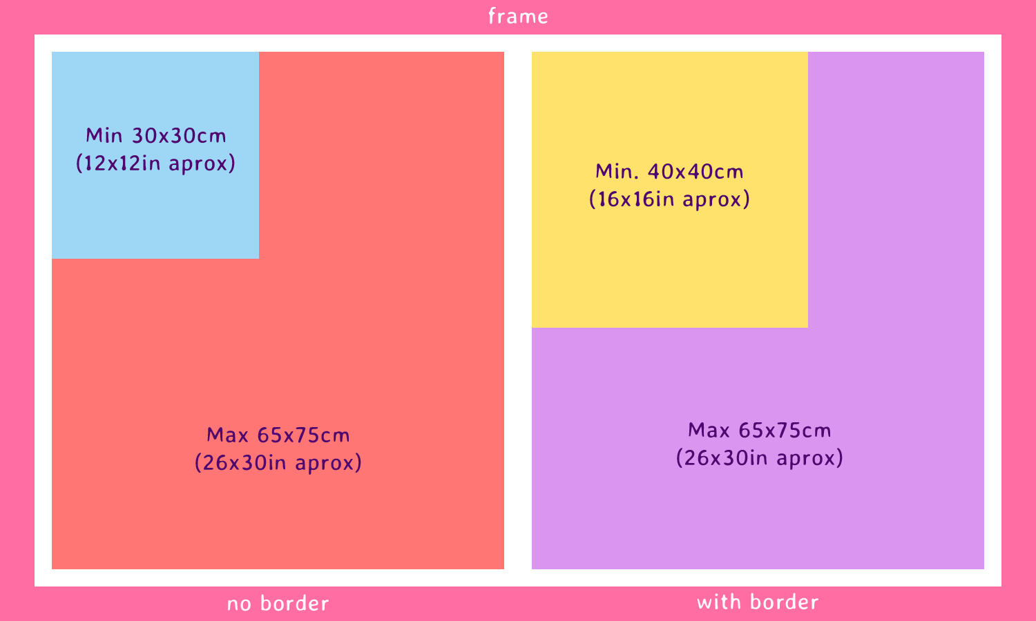 The minimum is wider here because of the space the border occupies (min. 5cm on each side).
